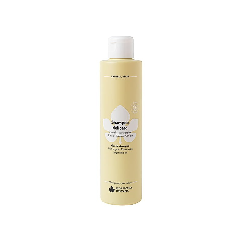 Descrizione- Uno shampoo con una bilanciata miscela di tensioattivi di origine vegetale, indicato per uso quotidiano. Deterge ed ammorbidisce i capelli senza annodarli. Contiene pregiato olio extravergine di oliva “Toscano IGP” bio e mirati estratti bio con proprietà lenitive e purificanti. Ideale per tutti i tipi di capello grazie alla sua azione delicata e disciplinante.